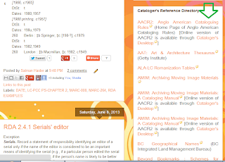 • Cataloger's Reference Directory : This section on the right-bottom of the blog lists useful links to web-resources for catalogers.