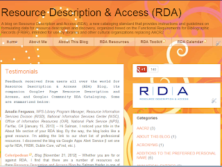 New Sections Added to RDA Blog : Cataloger's Reference Directory / Testimonials